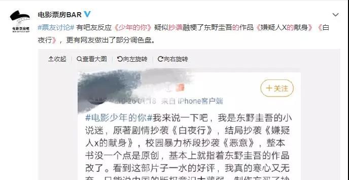 熱搜的關(guān)鍵詞就有了,《少年的你》被爆出抄襲這一個(gè)話題: