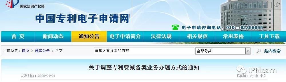關(guān)于調(diào)整專利費減備案業(yè)務(wù)辦理方式的通知